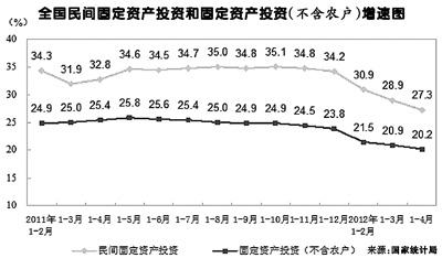 国家统计局公布的数据显示,1—4月份,我国固定资产投资75592亿元,同比增长20.2%,增速创下2003年以来的最低值。引人关注的是,民间投资仍保持高速增长势头。今年前4个月民间固定资产投资所占比重达到了62%,同比增速27.3%,高于全国固定资产投资增速。