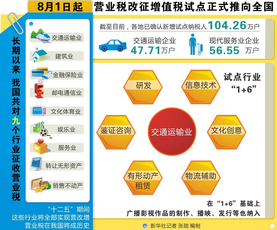 图表:8月1日起营业税改征增值税试点正式推向全国