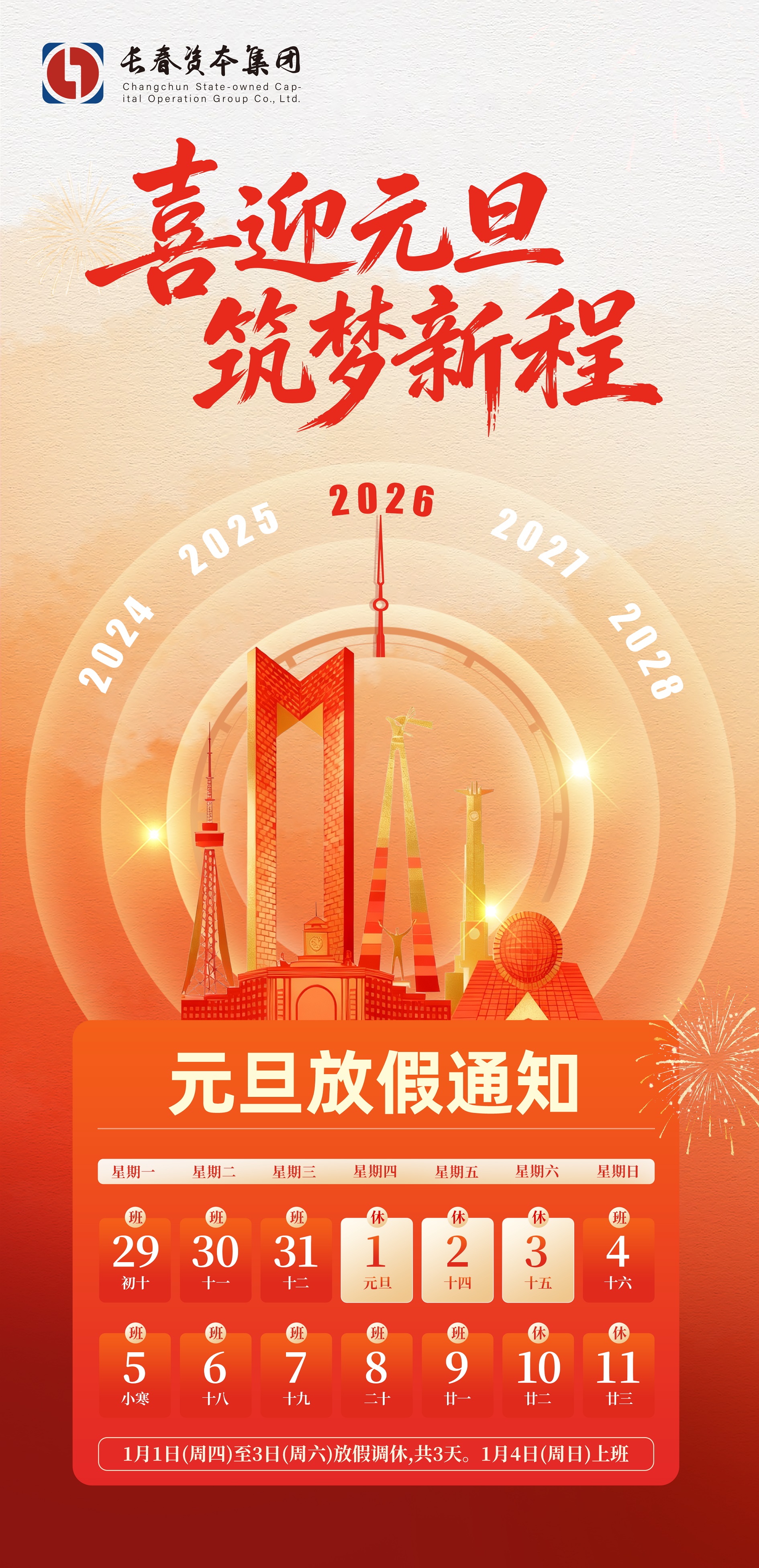 长春资本集团2026年元旦放假通知